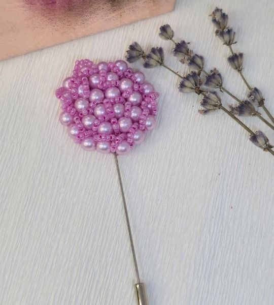 Brosa cu perle roz pe ac