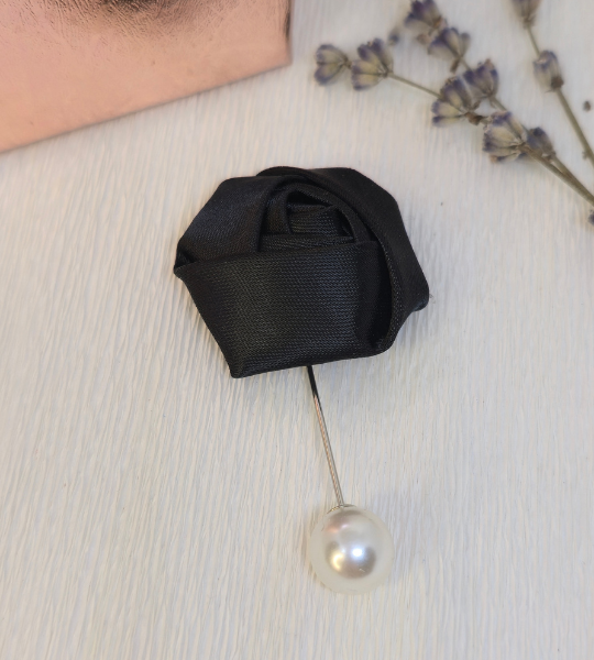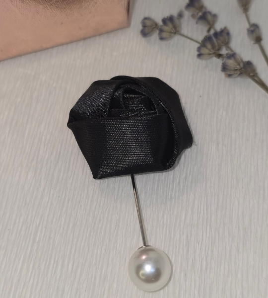 Broșă handmade – Black Rose Elegance