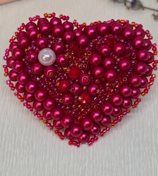 Broșă handmade – Passion Pearl, realizată manual cu mărgele de sticlă și ac din inox hipoalergenic, potrivită pentru orice ținută.