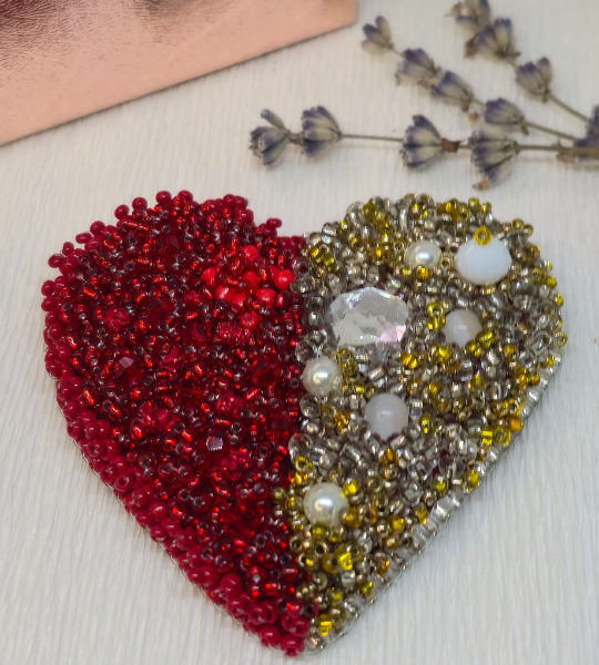 Broșă handmade – Glamour Hearthandmade este o bijuterie elegantă și unică.