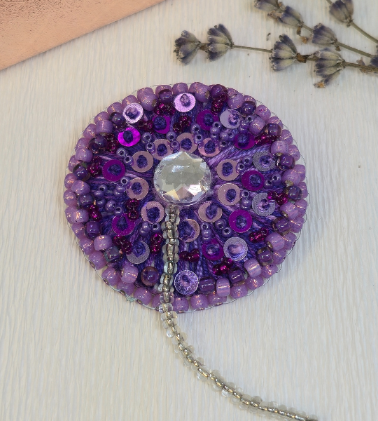 Broșă păpădie handmade, realizată manual cu mărgele de sticlă și ac din inox hipoalergenic, potrivită pentru orice ținută.