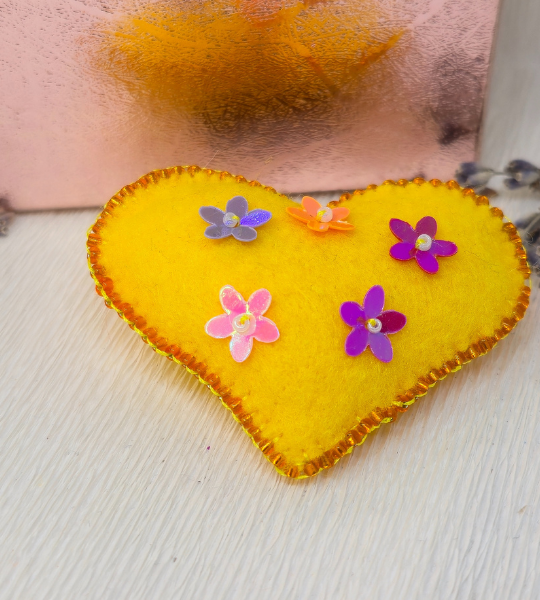 Broșă/mărțișor Inima cu Flori – Inimi Cusute cu Drag