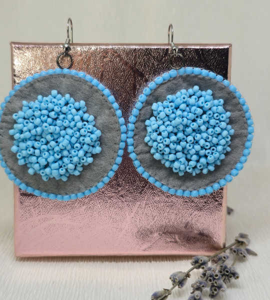 Acești Cercei handmade – Statement Rotunzi „Blue Serenity ” sunt o bijuterie unică, realizată manual cu atenție la fiecare detaliu.