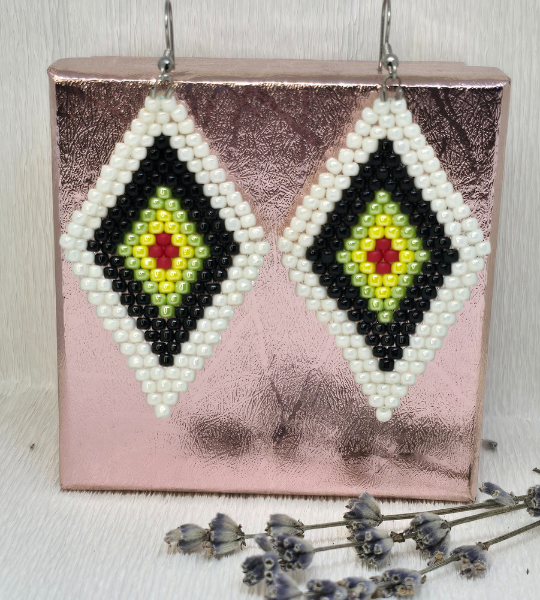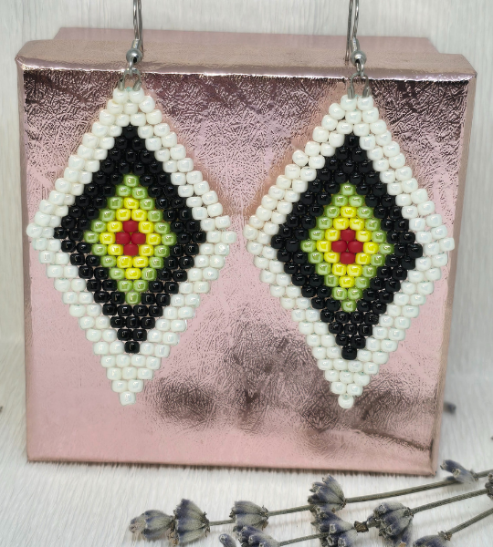 Cercei handmade „Talisman Tribal” realizați cu mărgele Toho și accesorii din oțel inoxidabil hipoalergenic, ideali pentru un look unic și plin de energie.