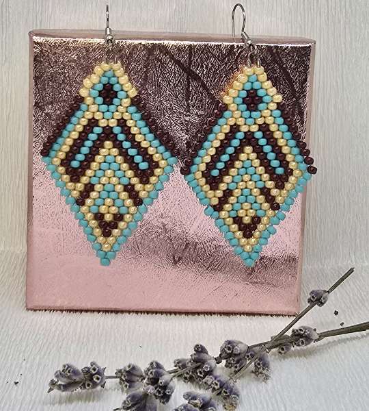 Descoperă cerceii Toho handmade „Ethno Vibes”, o pereche de bijuterii statement, realizate manual din mărgele japoneze Toho de cea mai bună calitate.