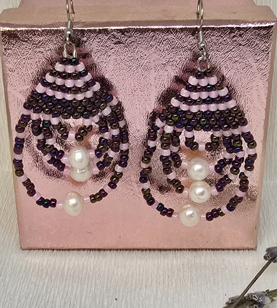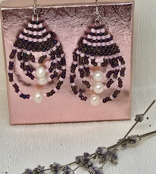 Descoperă Cerceii Toho handmade „Purple Elegance”, o pereche de bijuterii spectaculoase, realizate manual din mărgele japoneze Toho și perle delicate.