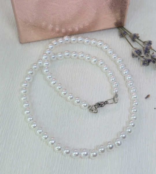 Colierul handmade cu perle albe este versatil și poate fi purtat la ocazii speciale sau la întâlniri elegante.