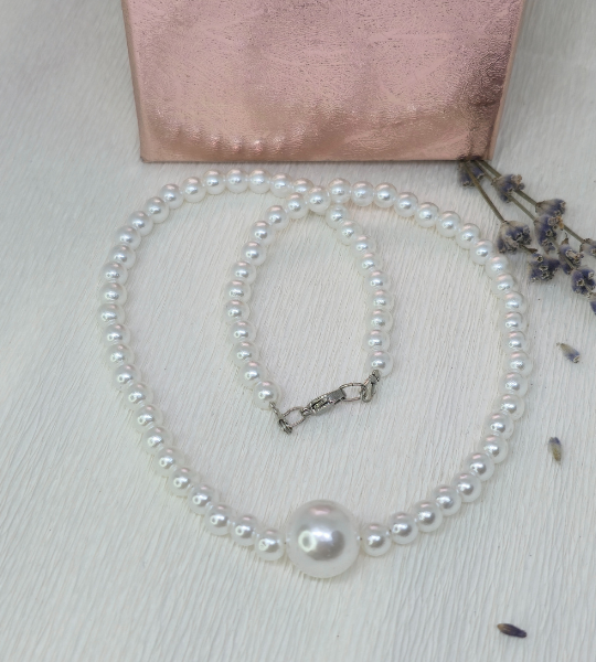 Colierul handmade cu perlă albă centrală simbolizează puritatea, feminitatea și noblețea. Perla centrală atrage atenția discret, dar ferm, fiind un punct focal care transformă accesoriul într-un adevărat statement.