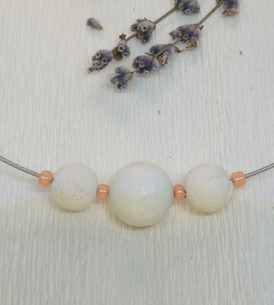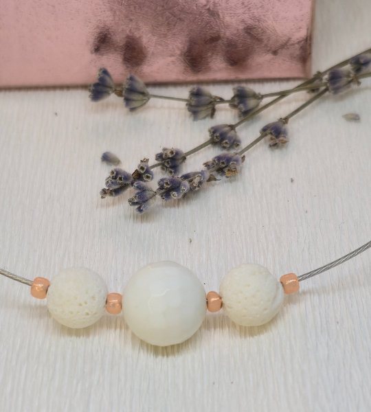 Colier handmade „White Harmony” cu rocă vulcanică albă