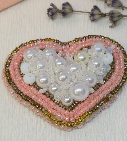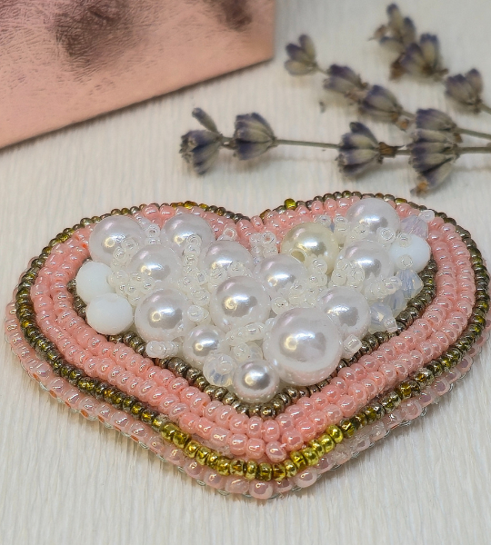 Broșă handmade – Pearl Romance, realizată manual cu mărgele de sticlă și ac din inox hipoalergenic, potrivită pentru orice ținută.