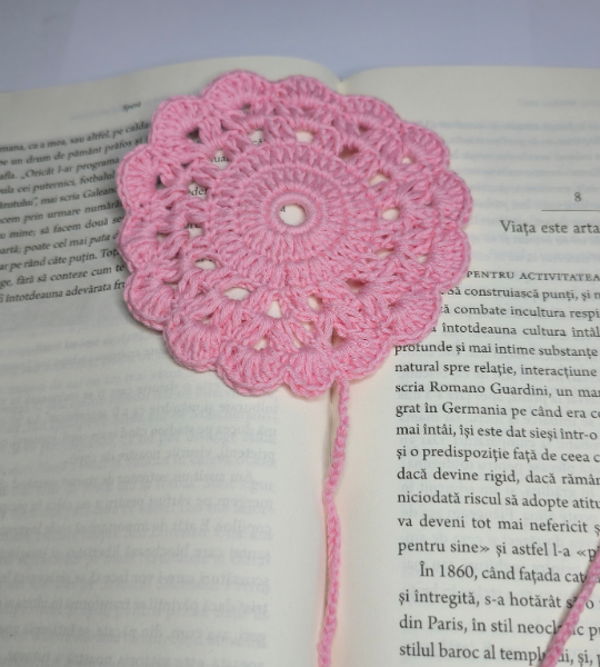 Acest semn de carte este parte dintr-o colecție dedicată accesoriilor croșetate, unde tradiția întâlnește eleganța modernă.
